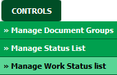 | 5. | Once you are on Aircraft Specification page, hover on the Controls and click on Manage Work Status List option. It will open new window of Manage Work Status List. | |
