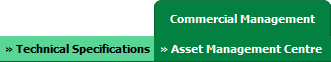 | 2. | Hover over the Commercial Management tab then Hover over Asset Management Centre and Click on Technical Specifications tab. | |