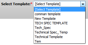 | 5. | Select template from dropdown. Note: If no template names are available in the list, then the user need to go to masters to create a template. |