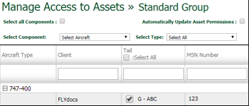 | 7. | Now you can give permissions of Select all Components, any specific component or any specific type component and you can also give permission of automatically update asset permission to User group. | |