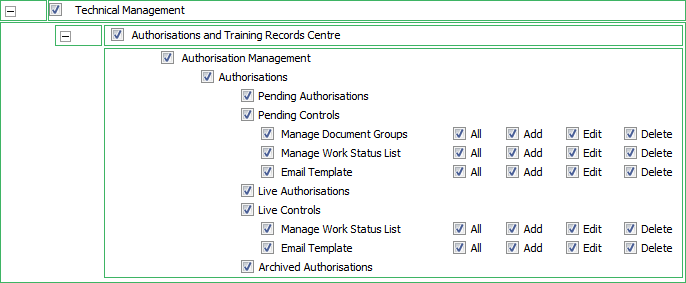 | 6. | Go to Technical Management » Authorisation Management » Authorisation and Tick the tick box shown in front of Authorisations. | |