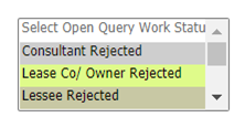 If in Step 8, "Details" selected, then New Option will be enabled for selecting open query Work Statuses.