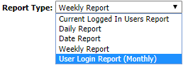 | 3. | Go to Report Type list and Click on User login report(Monthly) from list. | |