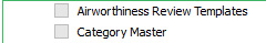 Access to Category Masters for Airworthiness Review Template under Masters: