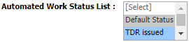 | 10. | Select status from 'Automated work Status List'. Note: User has to select at least one work status from the "Automated Work status List" dropdown. |