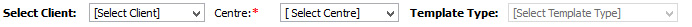 | 5. | Select the Client then Centre then Template Type. In Template Type select Main Template in drop down. | |