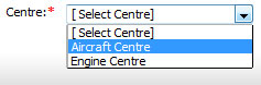 | 5. | Select Aircraft Centre or Engine Centre from List. | |