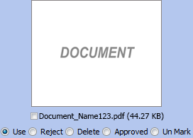 | 6. | Select the radio button of use/reject/Delete/Approved/Un Mark shown under document. | |