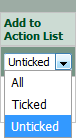 | 5. | Go to column naming 'Add to Action List' and Select Unticked value from the list. It will load Unticked rows of Action List into grid. |
