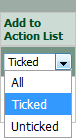 | 5. | Go to column naming 'Add to Action List' and Select Ticked value from the list. It will load Ticked rows of Action List into grid. |