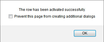 | 8. | Another message will shortly appear after that to confirm "The row has been activated successfully." Click OK. |