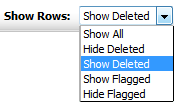 | 5. | Go to Show Rows dropdown and Select Show Deleted from it. It will show deleted rows into grid. | |