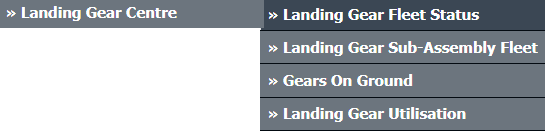 | 3. | Hover over the Landing Gear Centre tab and Click on the any tab. Note: As shown in image, We have clicked on Landing Gear Fleet Status tab. |