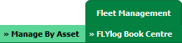 | 2. | Hover over the Fleet Management tab then Hover over the FLYlog Book Centre Tab and Click on Manage By Asset tab. | |