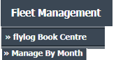 | 2. | Hover over the Fleet Management tab then Hover over the FLYlog Book Centre Tab and Click on Manage By Month tab. | |