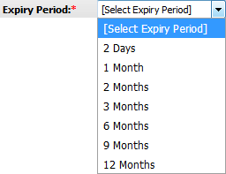 | 6. | Select Expiry Period from the list and Select other required fields. | |