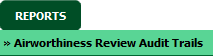 | 6. | Hover over the Reports dropdown and Click on Airworthiness Review Audit Trails Report Tab. It will open Airworthiness Review Audit Trails page in a new window. | |