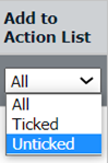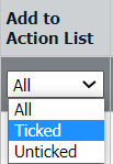 | 6. | Go to column naming 'Add to Action List' and Select Ticked value from the list. It will load Ticked rows of Action List into grid. |