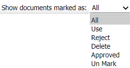 How do I filter documents to show as use, delete, reject, approved, un-mark?
