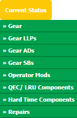 | 9. | Hover over the Maintenance Status button and Click on the Landing Gear History button. It will open new window. NOTE: The Maintenance Status button will become active once an Landing Gear record has been selected. |