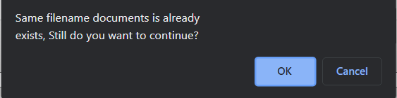 After clicking on Copy button, If same filename document is already present then it will show a pop-up message. If you still want to continue the copy process then click on OK button, then the copy process will be done. |