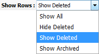 | 7. | Go to Show Rows dropdown and Select Show Deleted option from list. | |