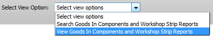 | 5. | Select view option that "View Goods In Compnents and Workshop Strip Reports" for search. | |