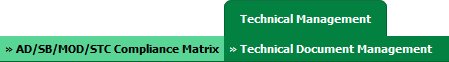 | 2. | Hover over the Technical Management tab. Hover over the Technical Document Management Tab and Click on AD/SB/MOD/STC Compliance Matrix tab. | |