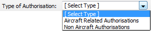 | 7. | Select Aircraft Related or Non Aircraft Related Authorisation under Authorisation Type Field. | |