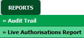 | 5. | Navigate to Live Authorisation Report under Reports Button. |