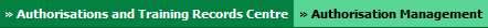 | 3. | Hover over the Authorisations and Training Records Centre option in the dropdown and Click on Authorisation Management. | |