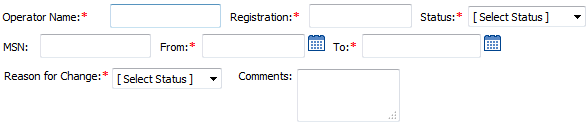 | 6. | Enter Operator Name, Registration and Select Status from the list. | |