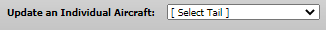 | 4. | Go to Update an Individual Aircraft list and Select Tail from the list. It will load all aircrafts for that Tail into grid. |