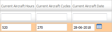 | 5. | Go to grid and Select aircraft for which you want to add values and Enter values for Current Aircraft Hours, Current Aircraft Cycles and Current Aircraft Date. Note : User can add the Zero in Utilization field for the assets as well. The format of "Current TSN’ to support utilization as ‘0:00’ and ‘Current CSN’ to support utilization as ‘0". |