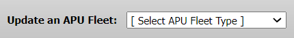 | 4. | Go to Update an APU Fleet list and Select APU Fleet Type from the list. It will load all APU for that Fleet Type into grid. | |