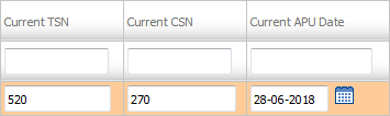 | 5. | Go to grid and Select APU for which you want to add values and Enter values for Current TSN, Current CSN and Current APU Date. Note : User can add the Zero in Utilization field for the assets as well. The format of "Current TSN’ to support utilization as ‘0:00’ and ‘Current CSN’ to support utilization as ‘0". |