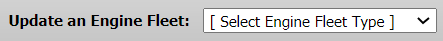 | 4. | Go to Update an Engine Fleet list and Select Engine Fleet Type from the list. It will load all engines for that Fleet Type into grid. | |