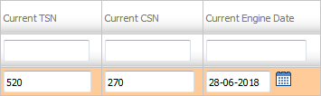 | 5. | Go to grid and Select Engine for which you want to add values and Enter values for Current TSN, Current CSN and Current Engine Date. Note : User can add the Zero in Utilization field for the assets as well. The format of "Current TSN’ to support utilization as ‘0:00’ and ‘Current CSN’ to support utilization as ‘0". |