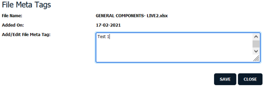 | 9. | Write File Meta Tag you want to give. Click on SAVE button. | |