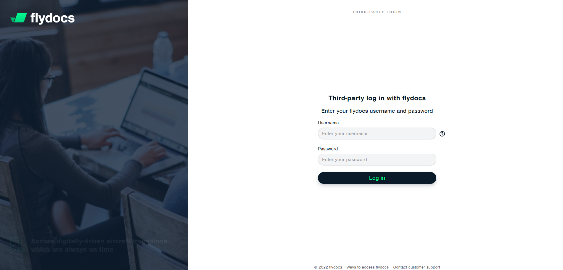 How do I login as a 3rd party client in FLYdocs?