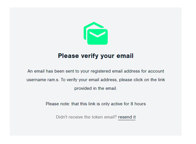 You will receive an email for verification of your registered email ID, If you will not received an email then click on RESEND button to resend verification email. |