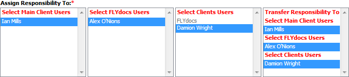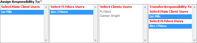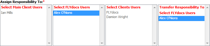 9. Go to Assign Responsibility To section and Select FLYdocs Users, Main Client Users or Clients Users from the list.
