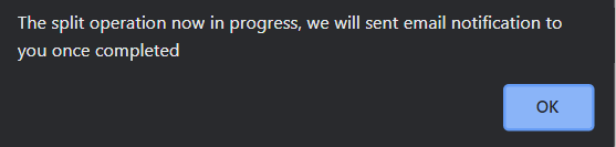 It will show you pop up message. Click on OK button. Split documents will save in same document list page. |