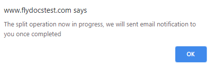 It will show you pop up message. Click on OK button. Split documents will save in same document list page. |