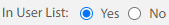 | 6. | Edit the option ‘In User List’ from ‘Yes' to ‘No'. | |