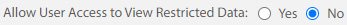 | 6. | Edit the option ‘User Access to view Restricted Data’ from 'Yes' to 'No'. | |
