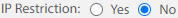 | 5. | Edit the option ‘IP Restriction’ from 'Yes' to 'No'. | |
