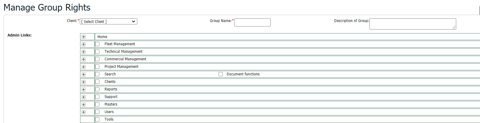 How do I edit to manage the main client user group in Manage Group Rights?