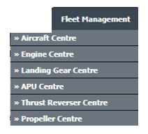 | 2. | Hover over the Fleet Management tab and Click on Aircraft Centre Tab. Note: User can select other CS centers.(Engine Center, Landing Gear Center, APU center, Propeller Center, Thrust Reverser) |