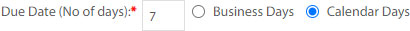 | 11. | Enter Due Date (No of days) and select radio button of Business Days/Calendar Days. | |